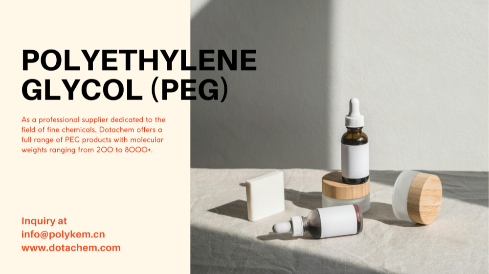 Njengomthengisi oqeqeshiweyo ozinikele kwintsimi yeekhemikhali ezintle, i-Dotachem inikezela uluhlu olupheleleyo lweemveliso ze-PEG ezinobunzima be-molecular ukusuka kwi-200 ukuya kwi-8000 +.